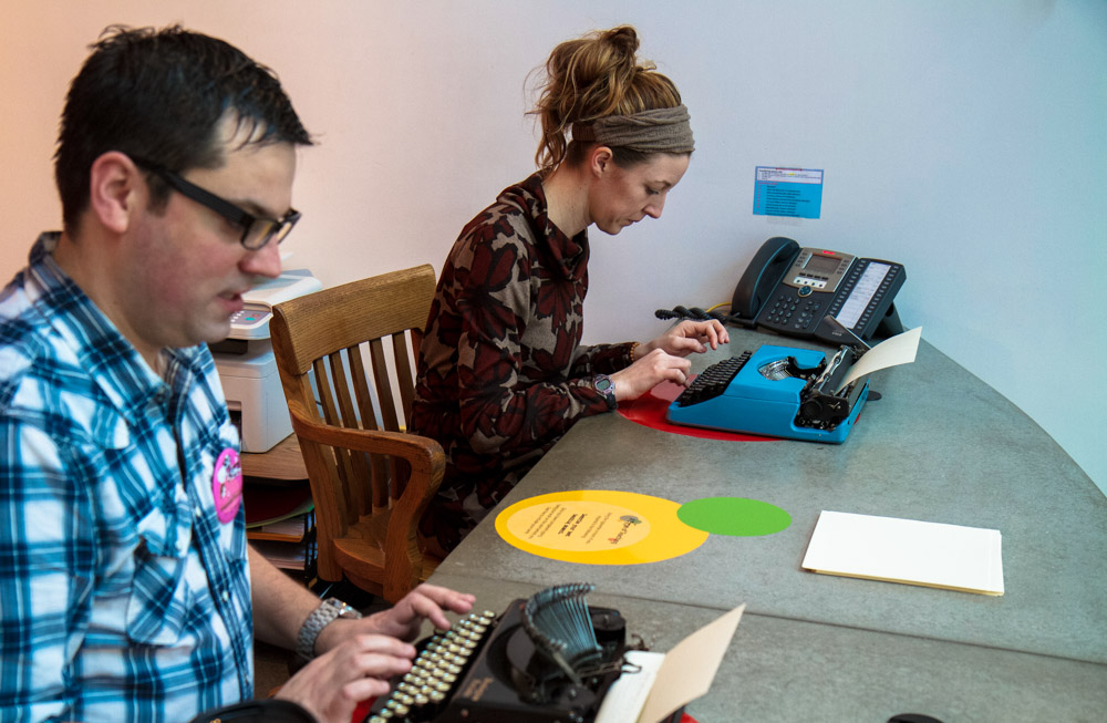 Participants were welcomed to our ArtStarts location with coffee, tea and baking, as well as interactive activities designed to get people thinking about the many modes available for documenting experiences. They were able to enjoy a mini Tech Museum, which highlighted many formats for documentation through the ages.