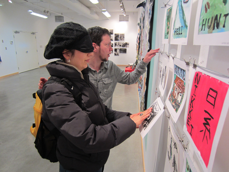Francois guides a blindfolded guest through the ArtStarts Gallery as part of the PUSH Festival