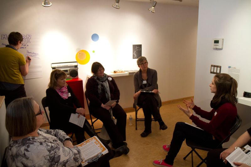 Jacquie takes notes and contributes to a discussion with educators and artists at Momentum! presented by Infusion Studio